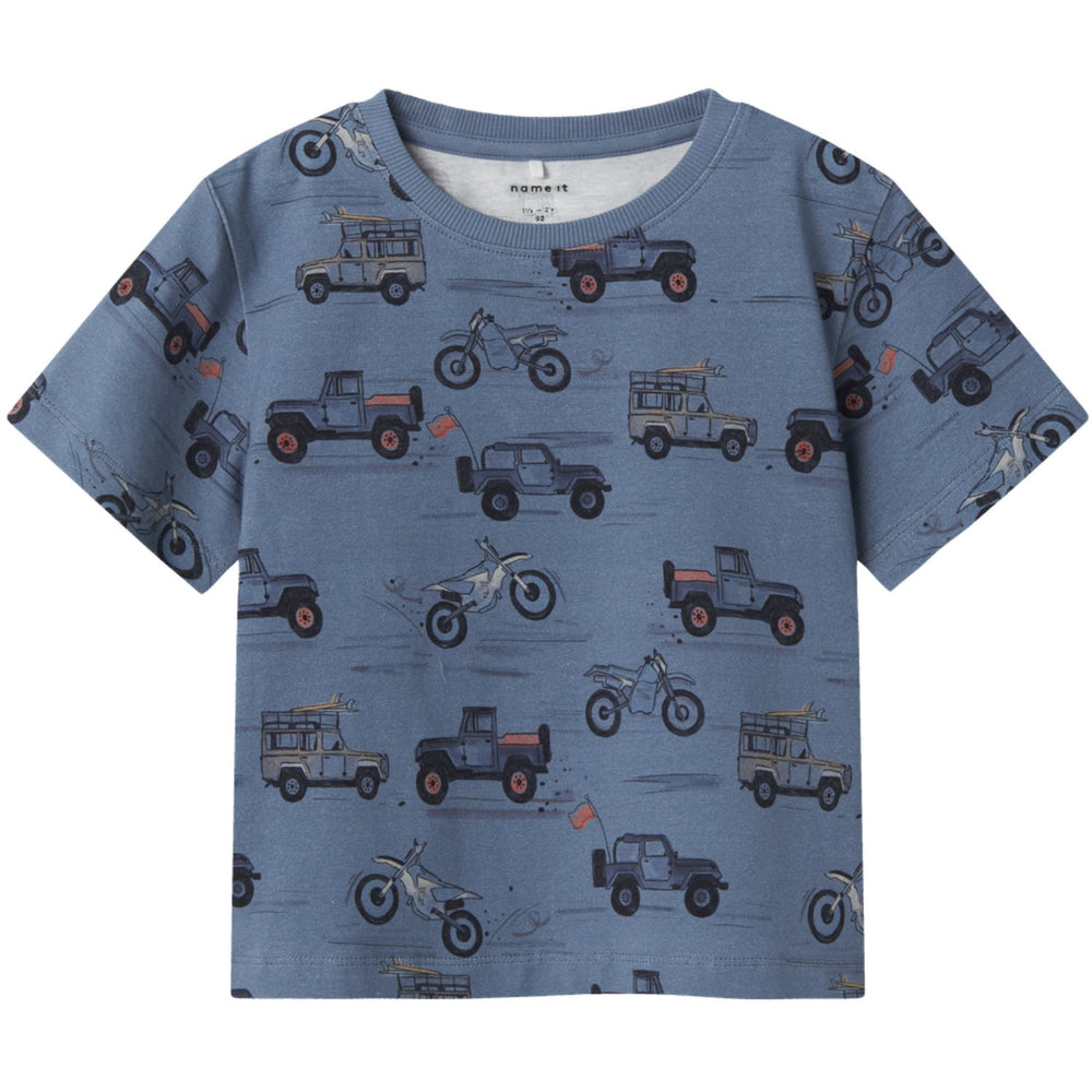 Berig dit barns tøjvalg med denne stilfulde Name It Blue Mirage Helsa Regular T-Shirt. Fremstillet af blød og strækbar jersey, sikrer denne T-shirt en behagelig pasform og fri bevægelse, perfekt til aktive børn. Den har en klassisk rund hals og korte ærmer, velegnet til både hverdagsbrug og særlige anledninger. Designet er leget med et gentaget mønster, der tilføjer en sjov og livlig touch. T-shirten er let at vedligeholde og holder sig flot selv efter gentagen vask.