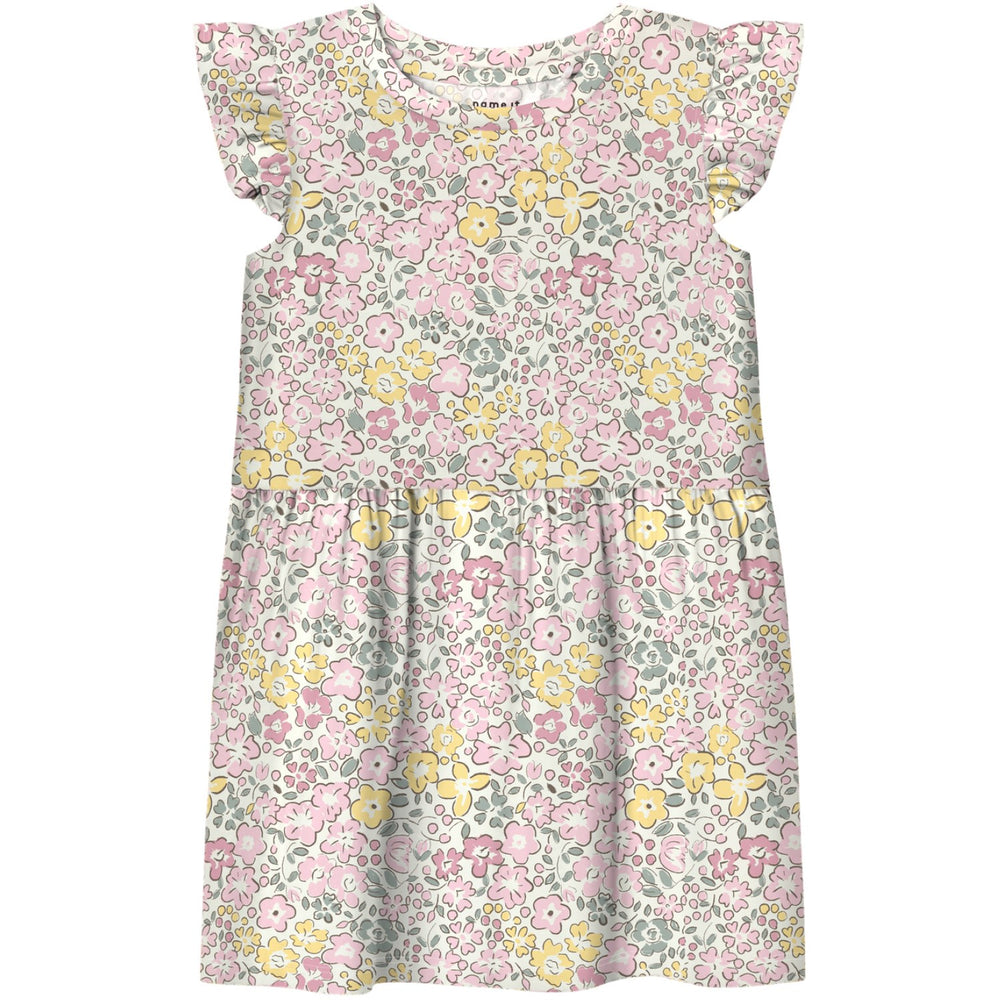 Gør klar til sommerens eventyr med denne charmerende Haile Kasket Kjole fra Name It. Kjolen er fremstillet i blødt og strækbart jersey-materiale, der sikrer optimal komfort og frihed til at lege. Med sit livlige Bright White Lemon Meringue-mønster og flæsemanchetter tilfører den en legende og stilfuld touch til enhver dag. Denne kjole er designet med hætteærmer og en klassisk rund hals, hvilket gør den ideel til varme dage. Let at vedligeholde og perfekt til både hverdag og festlige anledninger.