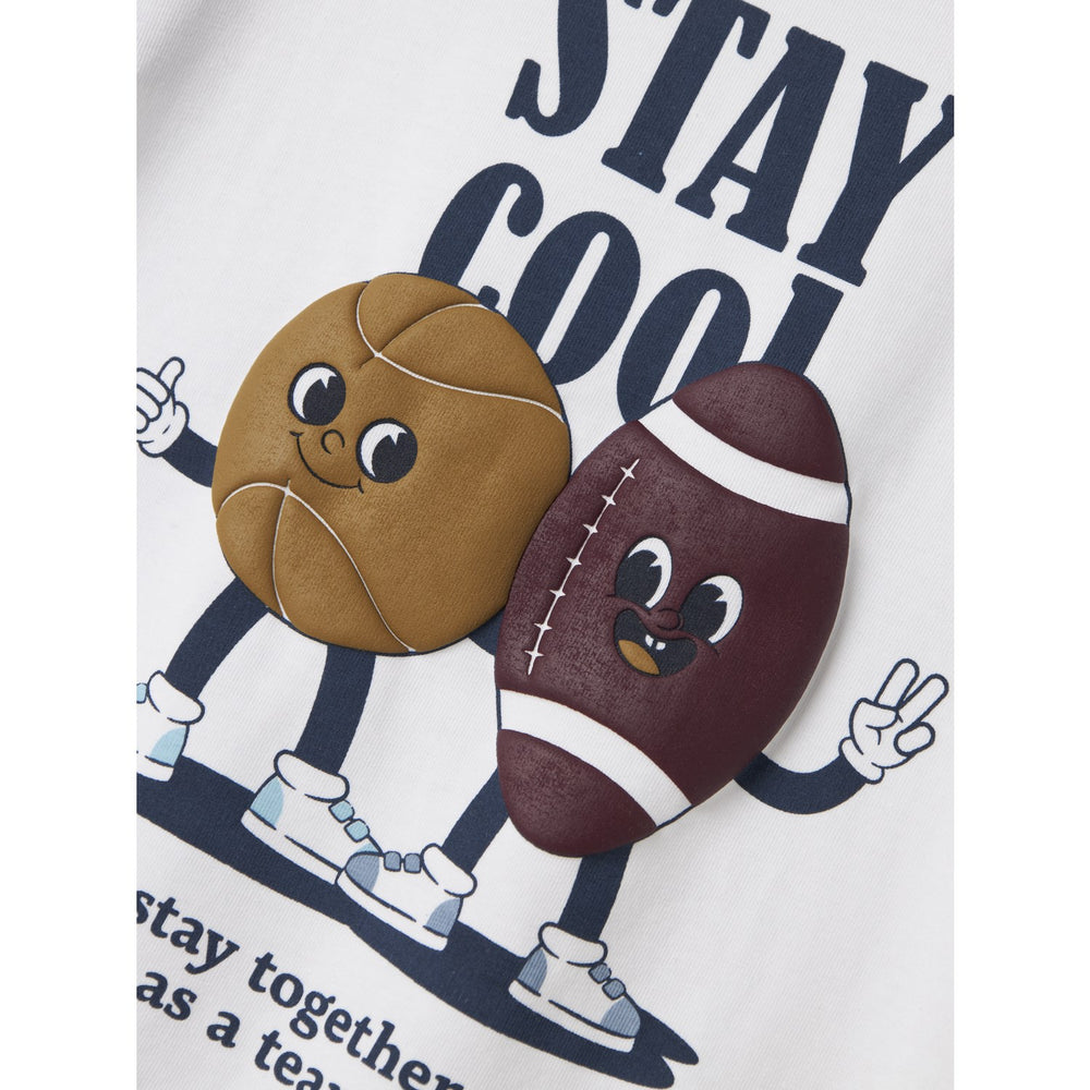 Giv dit barn komfort og stil med denne 'Name It Bright White Nmmkyler Ss Top Box' T-shirt. Fremstillet af jersey, et materiale kendt for sin lette og strækbare kvalitet, sikrer det en blød og behagelig oplevelse ved hver brug. T-shirten har en klassisk rund hals og korte ærmer, ideel for aktiv leg og dagligdags anvendelse. Designet kombinerer både gummiprint og skumprint, hvilket tilføjer en unik tredimensionel effekt og gør den både visuelt tiltalende og behagelig at have på. Med sin almindelige pasform, understøtter den barnets bevægelsesfrihed uden at gå på kompromis med stilen.