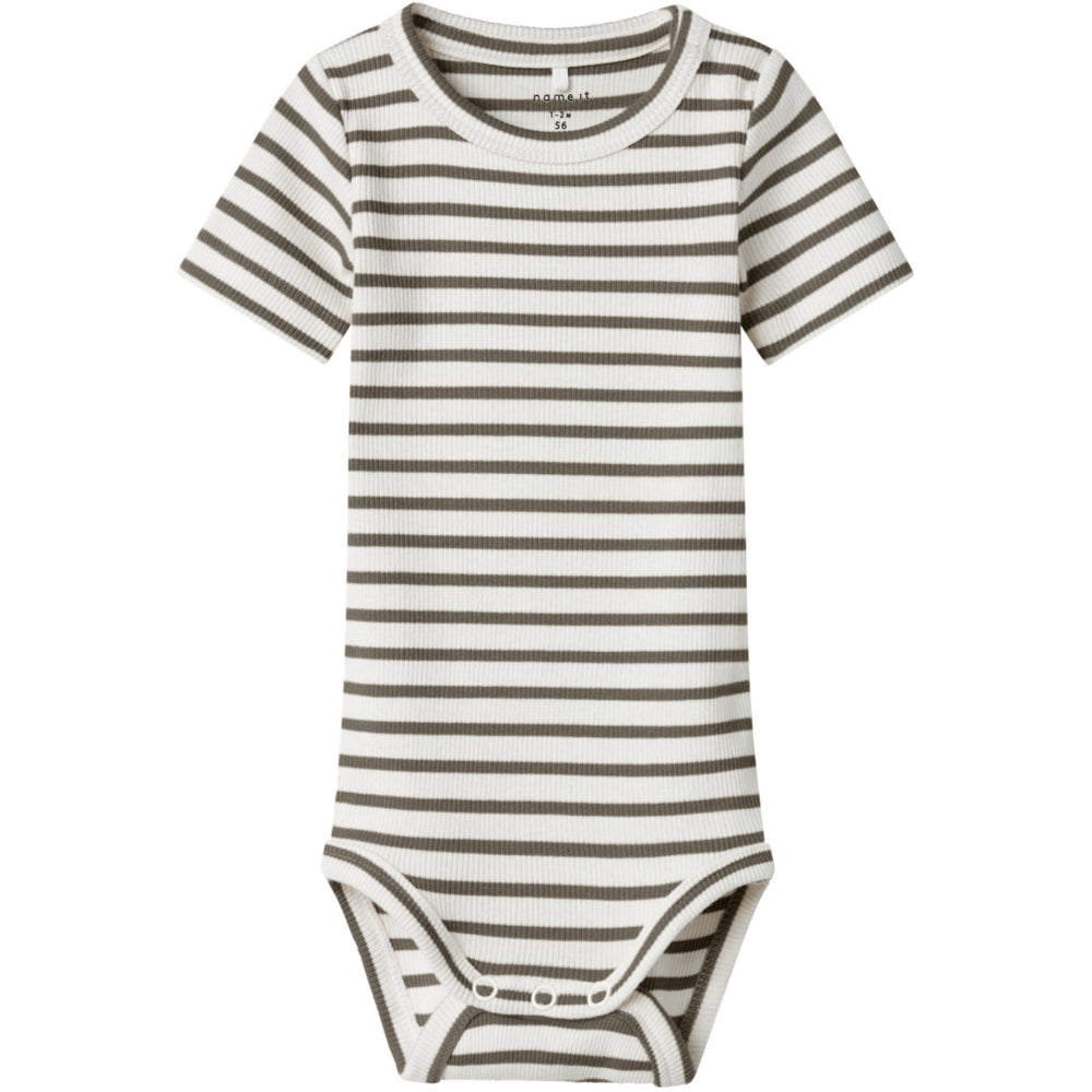 Denne Name It Bungee Cord Bani Body Noos bodystocking kombinerer stil og komfort til dit barns garderobe. Udført i en behagelig ribstrik med et lodret stribet mønster, sikrer den både elasticitet og en klassisk stil. Med rund hals, korte ærmer og trykknaplukning, er denne bodystocking både nem at tage på og praktisk i brug. Vær opmærksom på sikkerhedsinstruktionen om at holde produktet væk fra ild.