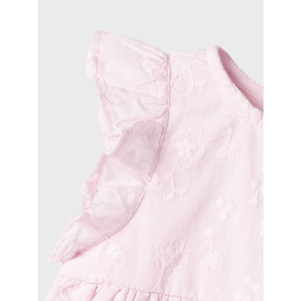 Lys op i din lille éns garderobe med denne charmerende Detine Spencer kjole i lys lilla fra Name It. Den er designet med praktisk knap- og løkkelukning, en yndefuld rund hals og ærmeløst snit, der er perfekt til varme dage. Det vævede stof med sit krydsmønster tilføjer et klassisk touch, mens bomuldsforet sikrer komfort og en ikke-gennemsigtig finish. Kjolens flæser og fine broderidetaljer fuldender det stilfulde look, og den almindelige pasform giver optimal bevægelsesfrihed for leg og eventyr.