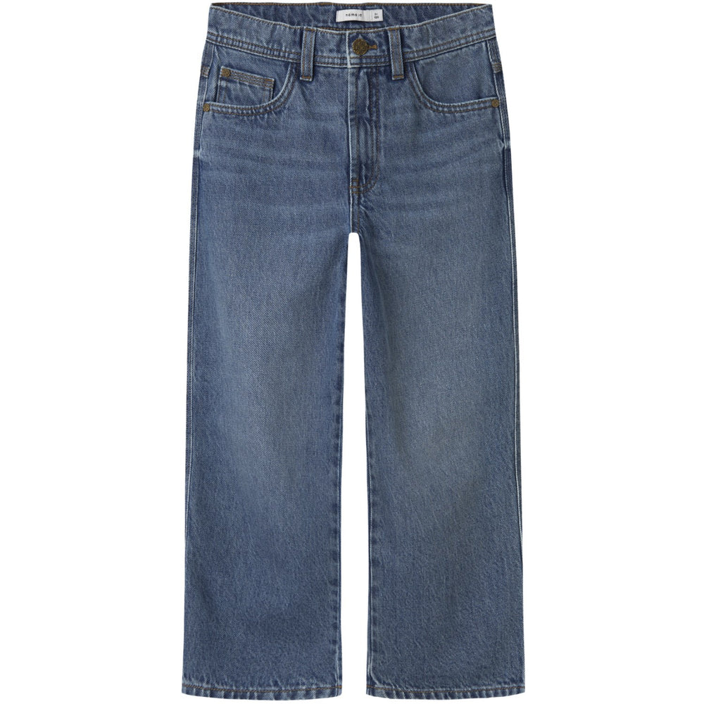 Disse skaterjeans fra Name It i medium blå denim er perfekte for det moderne barn, som ønsker både stil og komfort. Jeansene er fremstillet i robust denim, som sikrer langvarig brug og let vedligeholdelse. Med en krogknap og lynlås er de nemme at tage på og af, hvilket gør dem ideelle til hverdagsbrug. Designet inkluderer praktiske lommer på bag, mønt og foran samt justerbare taljeindstillinger, der sikrer en perfekt pasform for voksende børn. Den trendy skater-silhuet og kraftige slidser giver et unikt og ungdommeligt præg til disse alsidige jeans.