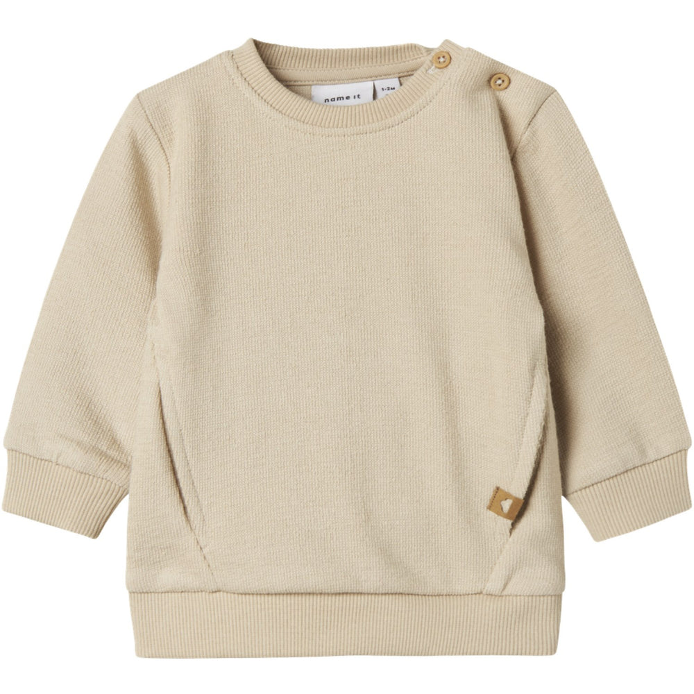 Introducer dit barn for en ny, blød hverdagsfavorit med Peyote Nbmloop Ls Sweat fra Name It. Denne sweatshirt, fremstillet i blødt frotté, tilbyder både varme og stil med dens runde hals og lange ærmer. Den praktiske trykknaplukning gør det nemt for dit barn at tage sweatshirten på og af, mens en forlomme tilføjer både stil og funktionalitet. Med sin almindelige pasform sikrer den komfort hele dagen, og det lille badge tilfører et moderne touch. Sikkerhedsadvarsel inkluderet: Holdes væk fra ild.