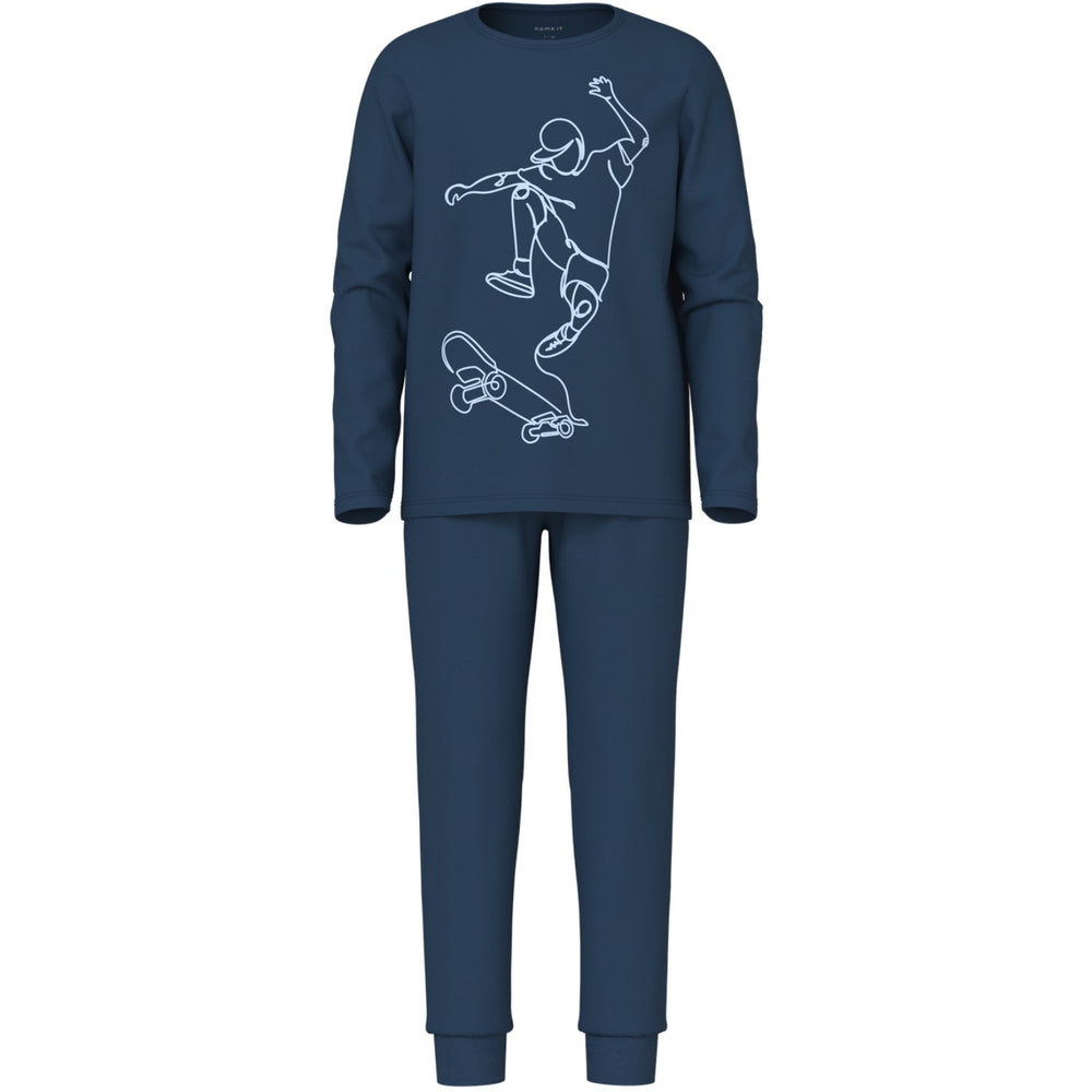Dette komfortable natsæt fra Name It er fremstillet i blødt økologisk bomuld, der sikrer en god nattesøvn. Designet med et sejt skaterprint og i en klassisk pasform, er dette sæt både stilfuldt og praktisk til hverdagsbrug. Den nemme vedligeholdelse og holdbarhed gør det ideelt til børn.