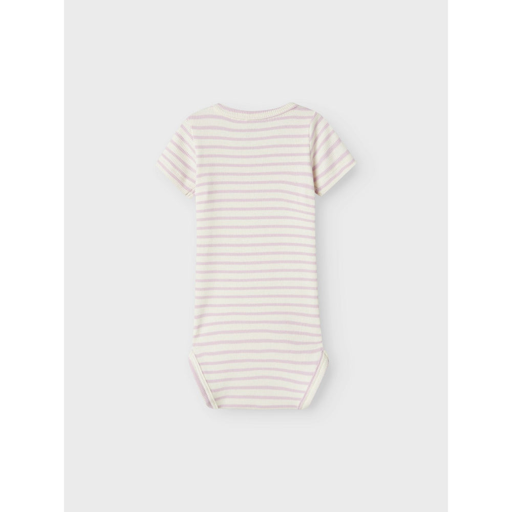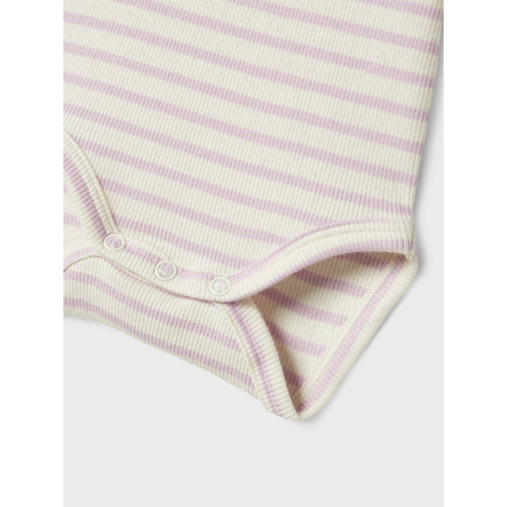 Gør hverdagen sødere med Name It Winsome Orchid Bani Body Noos. Denne bodystocking, fremstillet i blødt ribstrikket materiale, sikrer komfort hele dagen takket være stoffets naturlige elasticitet. Designet med korte ærmer og en praktisk rund halsudskæring, byder den også på trykknaplukning for nem påklædning. Den lodrette stribede mønster tilføjer et tidløst og stilrent udseende. Perfekt til leg og afslapning.