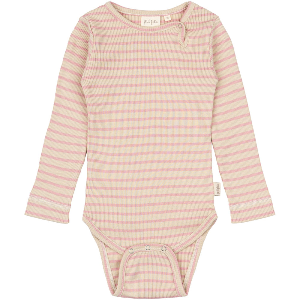 Petit Piao Bright Rose/Dark Off White Body L/S Modal Striped