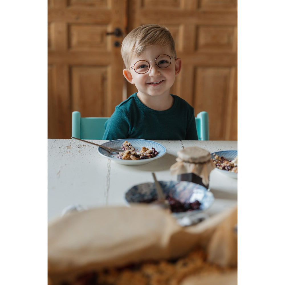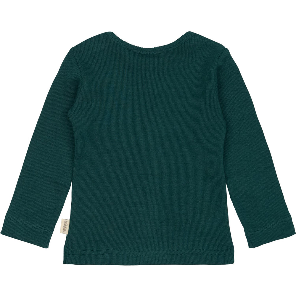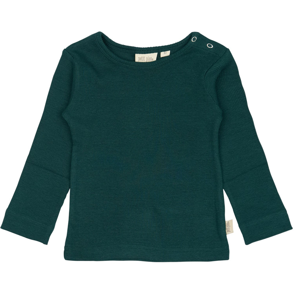 Denne Petit Piao Dark Sea bluse i ribkvalitet er perfekt til enhver lejlighed. Med en praktisk trykknap på skuldersømmen i størrelserne 74-92 sikrer den nem påklædning. Fra størrelse 98-122 er designet uden trykknapper, for et mere strømlinet look. Blusen er fremstillet af et blødt, strækbart materiale, ideelt til børns aktiviteter og komfort. Produceret i Indien, denne langærmede T-shirt er en både stilfuld og funktionel tilføjelse til dit barns garderobe.