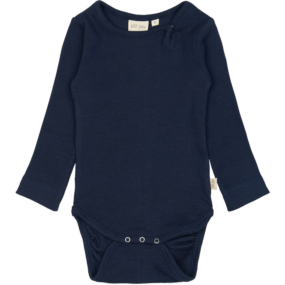 Denne langærmede bodystocking i klassisk ribkvalitet fra Petit Piao er perfekt til din lille én. Den er designet med en praktisk åbning ved halsen og trykknapper i bunden, som gør påklædning og bleskift let som en leg. Fremstillet af blødt og strækbart materiale, sikrer den optimal komfort og bevægelsesfrihed. Iøjnefaldende i 'Dress Blues', er den både stilfuld og funktionel, ideel til både hverdagsbrug og særlige lejligheder.