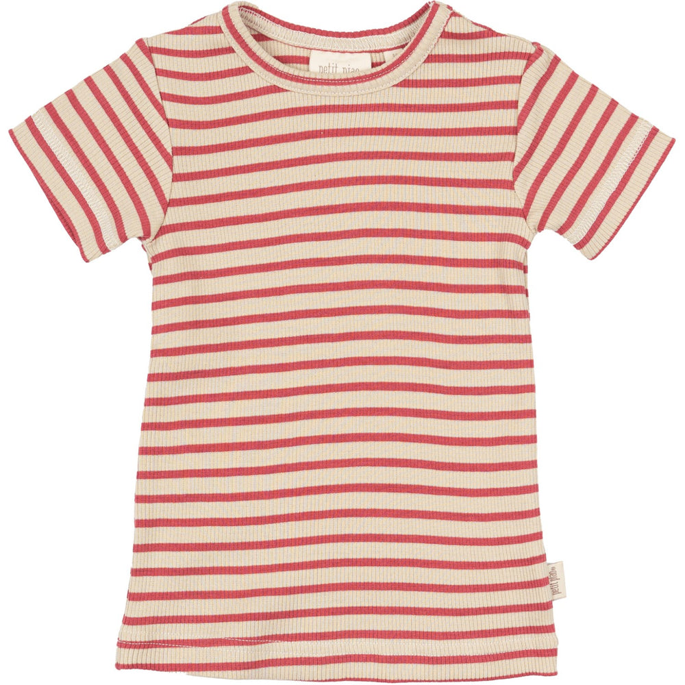 Petit Piao Light Berry/Dark Off White T-shirt S/S Modal Striped