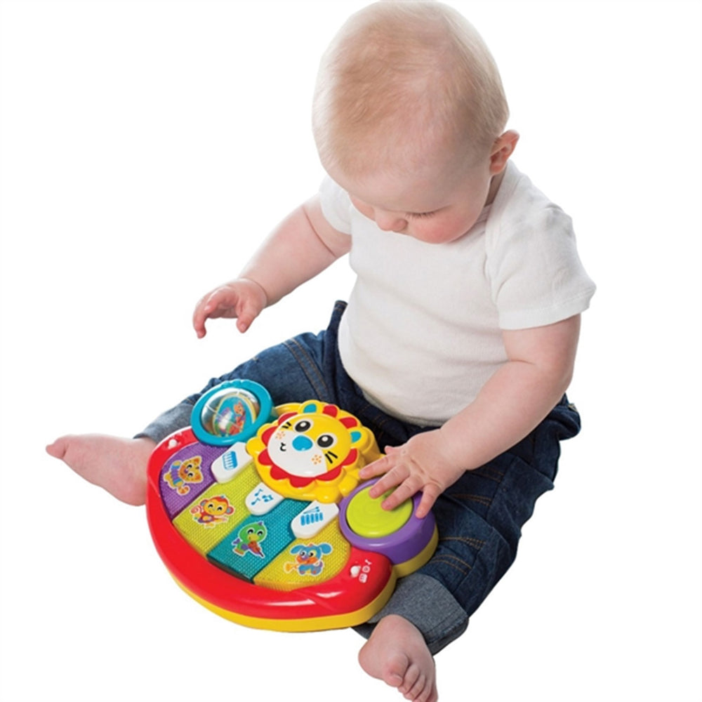 Bring musikken ind i dit barns spilleunivers med Playgro Aktivitet Løve Legetøjsklaver. Dette charmerende klaver er designet til at styrke børns musikalske evner og finmotorik fra en tidlig alder. Med store, farverige taster er det nemt for små hænder at navigere og skabe sjove toner, som stimulerer både hørelse og berøring. Klaveret er let og robust, hvilket gør det nemt at flytte rundt på og opbevare. Perfekt til kreativ leg både indendørs og udendørs, hvor det kan tåle lidt af hvert. En fantastisk måde at bringe familien sammen med musik og leg.