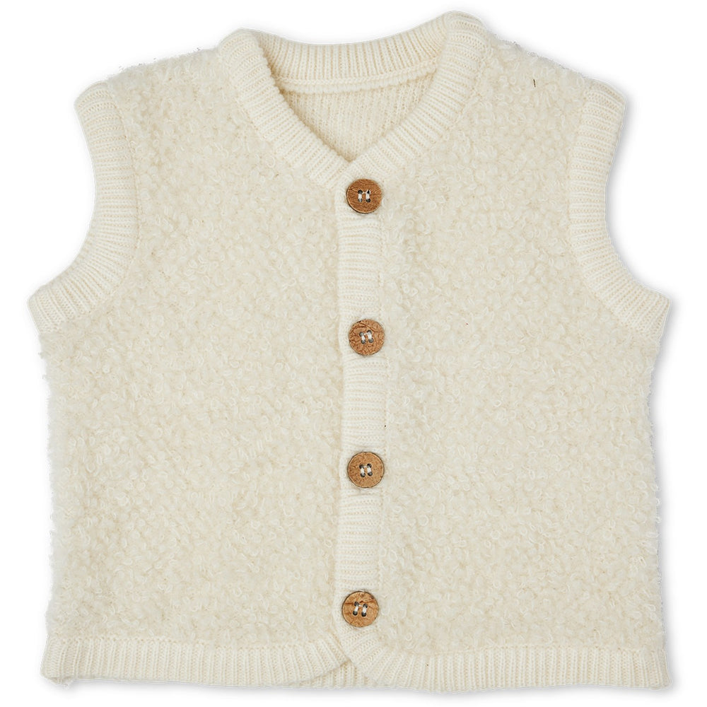 Smallstuff Off White Vest Bouclé Merino Uld Med Knapper