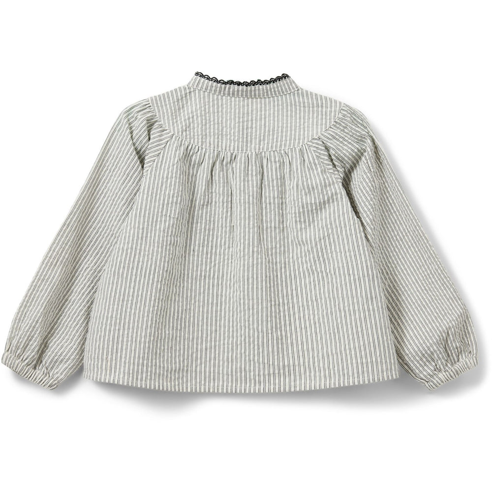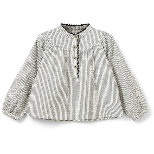Bliv klar til hverdag og fest med denne stilfulde skjorte fra Sofie Schnoor. Den er designet med grå og hvide tynde striber og detaljerede sorte broderikanter. Fremstillet i blødt 100% bomuld, sikrer denne skjorte komfort hele dagen samt nem vedligeholdelse. De lange ærmer med elastik ved manchetterne tilbyder en perfekt pasform, ideel til dit barns garderobe.