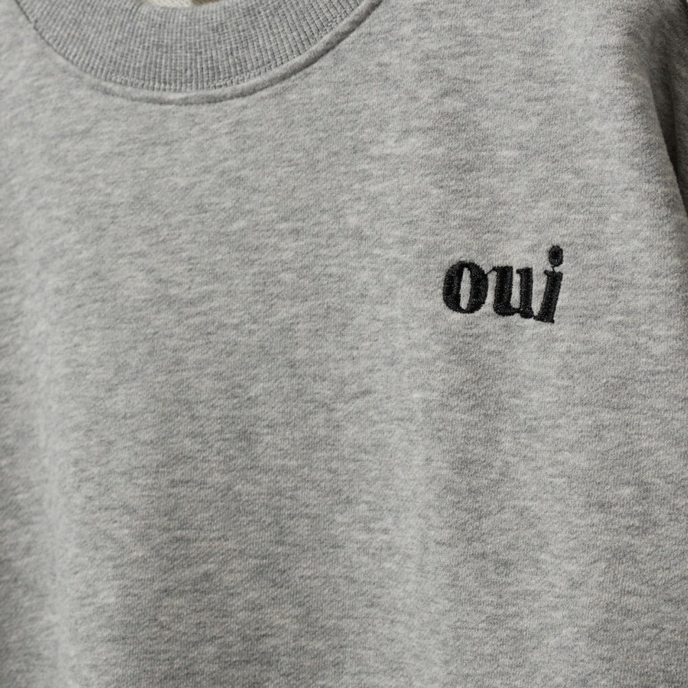 - Ekstra: Løs pasform med sænkede skuldre, rib manchetter ved hals, ærmer og bund, lille broderet "oui" på brystet