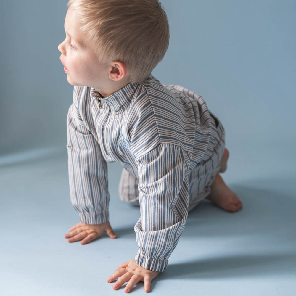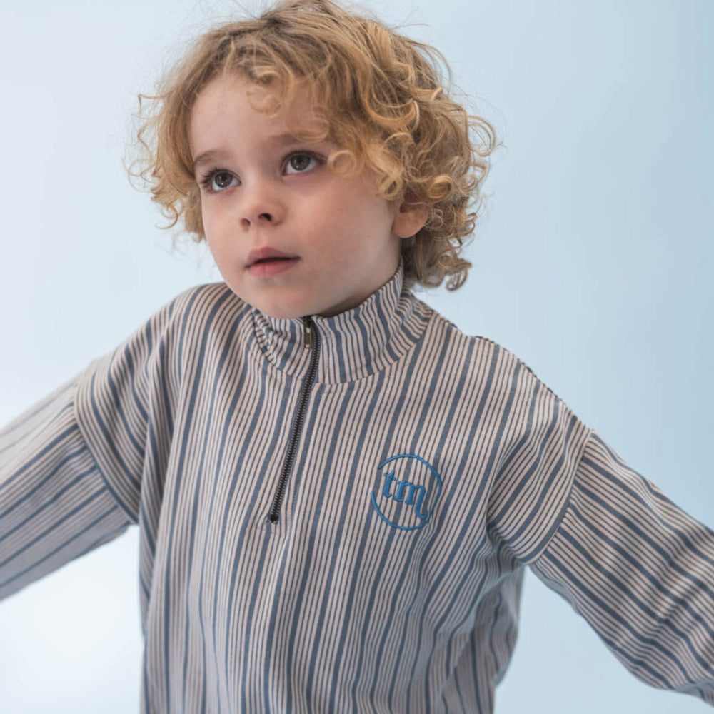 Denne bløde, printede That's Mine Classic Blue Masi sweatshirt har en praktisk lynlås ved halsen, der gør påklædning nemmere for både børn og forældre. Elastik i bunden og ved ærmekanterne sikrer en behagelig pasform. Det elegante broderede logo på brystet tilføjer et unikt touch. Perfekt i kombination med Meo sweatpants for et stilfuldt og komfortabelt sæt.