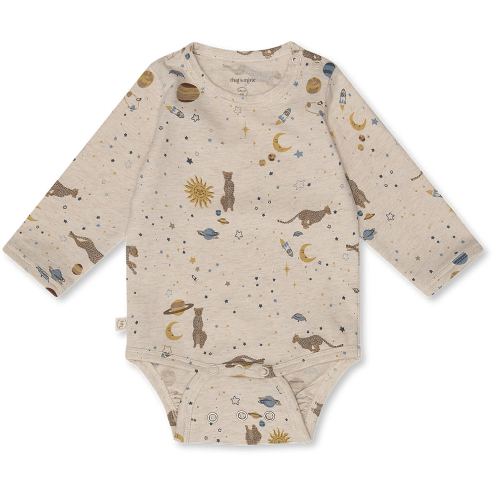 Gør hverdagen lettere og mere komfortabel for dit barn med denne bløde bodystocking fra That's Mine. Designet i en charmerende Leo Espace Mika-print, denne bodystocking er fremstillet af strækbart materiale, der tillader fuld bevægelsesfrihed. Med praktiske ekstra knapper nederst til lette skift sikrer den både stil og funktion. Perfekt til leg og hviletid.