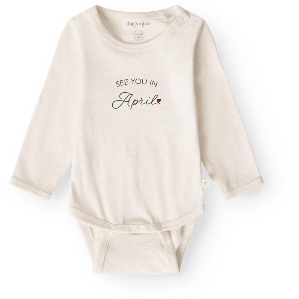 Varm og blød bodystocking til babyer - "See You In April" fra That's Mine. Denne charmerende bodystocking i lyseblå præsenterer et sødt budskab, perfekt til at dele den glædelige nyhed. Fremstillet af blødt materiale sikrer den maksimal komfort for de små, mens pasformen giver god bevægelsesfrihed. Let at vedligeholde, ideel til hyppig brug.