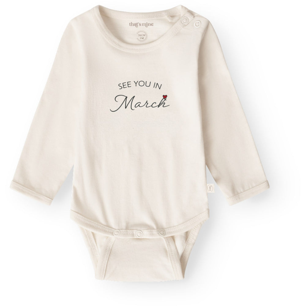 Tilføj et strejf af glæde til garderoben med "See You In March Obi" bodystocking fra That's Mine. Denne charmerende bodystocking er fremstillet med fokus på komfort og stylet med et nutidigt design, der inkluderer en sød meddelelse om den ventede ankomst i marts. Perfekt til at dele den store nyhed, den sikrer en blød pasform og er nem at vedligeholde. Ideel til familiesammenkomster eller som en gave.