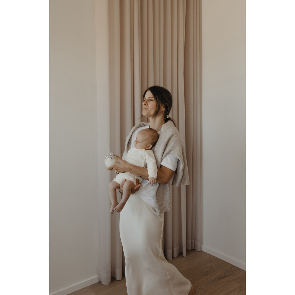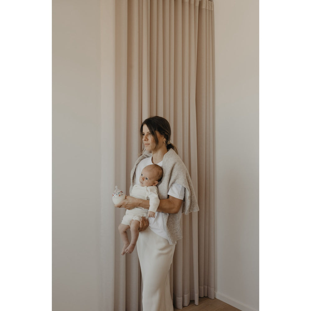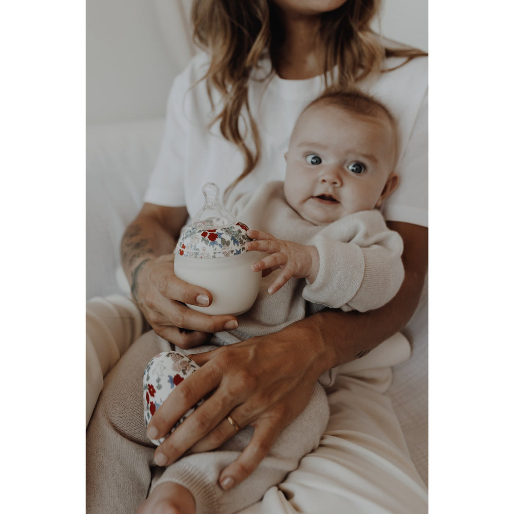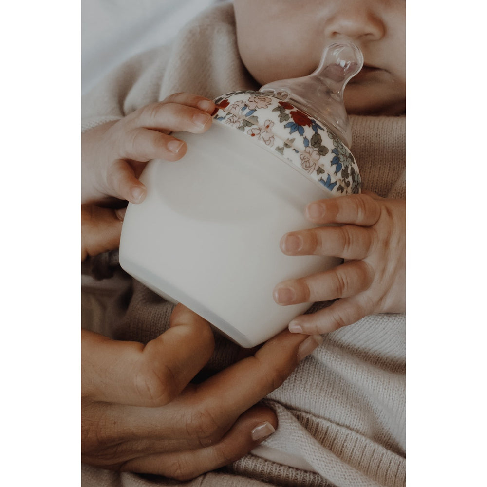 Giv din baby en naturnær oplevelse med That's Mine X Élhée Bittersweet Collab Baby Flaske. Denne 240 ml sutteflaske er lavet af blød, fleksibel silikone, der efterligner følelsen af at amme, hvilket gør overgangen mellem bryst og flaske smidig og behagelig. Flasken er designet til at reducere risikoen for babyens indtag af mikroplast, sikrende et sundere miljø ved måltiderne. Ideel til den moderne, bevidste familie, der værdsætter sikkerhed og komfort for deres lille.