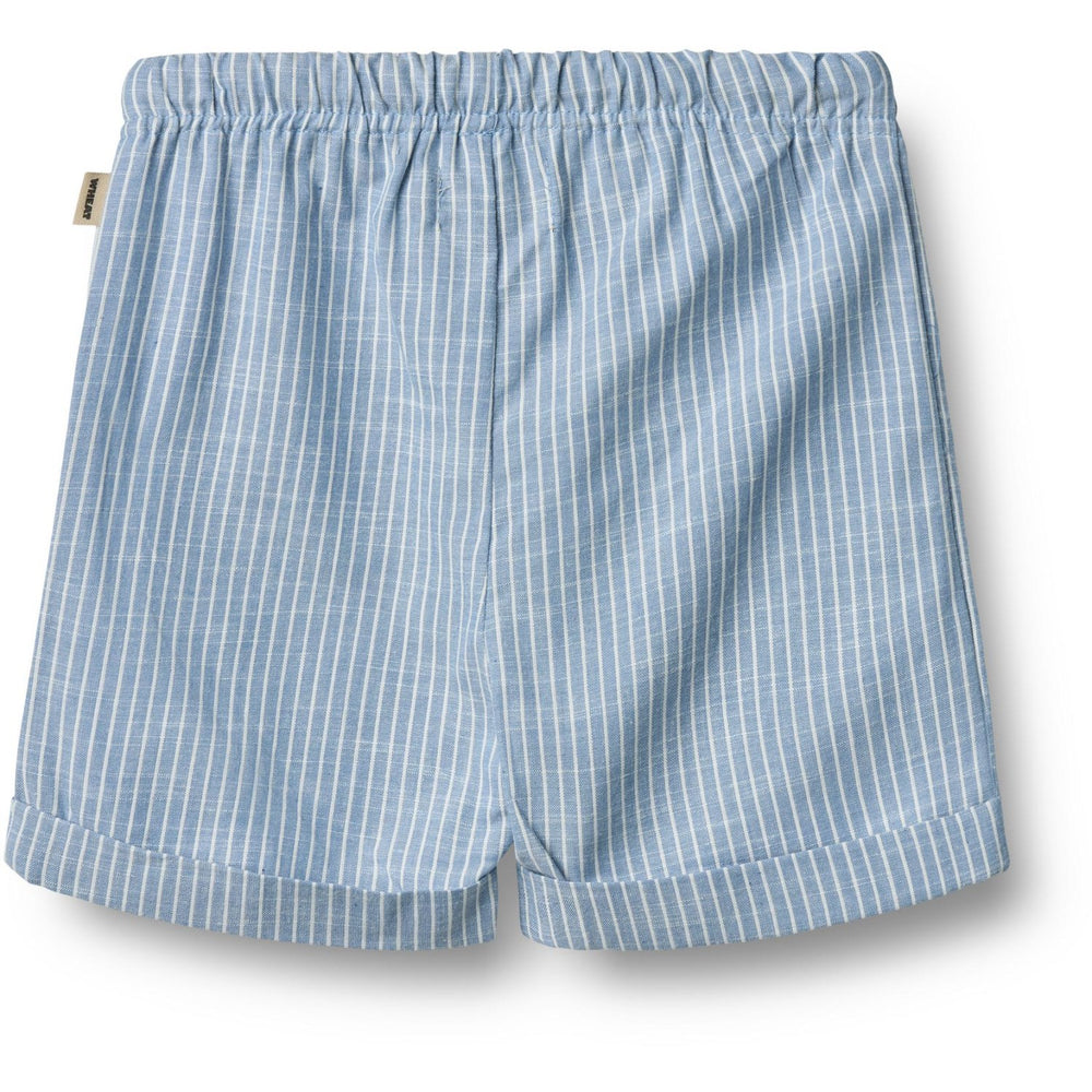 Disse stilfulde Wheat Blue Stripe Shorts Milton er perfekt til din lille éns garderobe. Fremstillet i 100% økologisk bomuld, sikrer disse shorts ultimativ komfort og holdbarhed. Med en løs pasform og bløde elastikker indvendigt på linningen, tilbyder de fri bevægelighed, mens de rynkede detaljer og snøre i taljen tilføjer et moderne touch. Den oprullede kant på benene giver et afslappet look, som er ideelt til både hverdagsleg og finere anledninger. Let at kombinere med andet tøj for et komplet outfit.