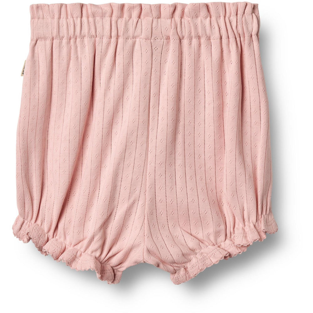 Gør hverdagen blødere og smukkere for din lille med Wheat Rose Sprinkle Jersey Shorts Lace Sonja. Disse charmerende shorts er lavet af 100% økologisk bomuld, designet til at sikre ultimativ komfort og bevægelsesfrihed. Den justerbare elastik i taljen og det bløde rib med pointellemønster og smukke picotkanter/blonder forneden tilføjer funktionalitet og stil. Perfekt til både almindelig leg og festligere anledninger, når de kombineres med en fin bluse eller skjorte. Oeko-Tex® Standard 100 og GOTS-certificeret for din tryghed.