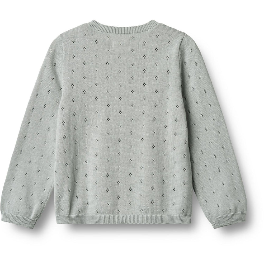 Denne charmerende strikkede cardigan fra Wheat byder på den perfekte kombination af stil og komfort. Fremstillet af 100% økologisk bomuld, garanterer denne langærmede cardigan en blød og irritation-fri oplevelse for dit barn. Designet med et let A-formet snit og dekorative hulmønstre, tilbyder den både elegance og funktionalitet med praktiske knapper ned foran. Ribbede detaljer ved halsudskæringen, manchetterne og forneden tilføjer en raffineret finish. Velegnet til hverdagsbrug og som et ekstra varmt lag under en jakke, vil denne cardigan uden tvivl blive en fast favorit i dit barns garderobe. Certificeret af GOTS og Standard 100 fra OEKO-TEX®, sikrer vi et sikkert og ægte kvalitetsprodukt.